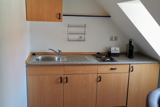 Das Apartment verfügt über eine Küchenecke mit Zubehör, Flatscreen und Soundsystem.